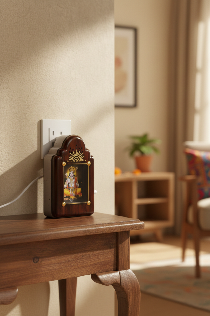 Isme easy plug-in system hai aur soft backlight ke saath aata hai, jo pooja aur daily chanting ke liye perfect hai.